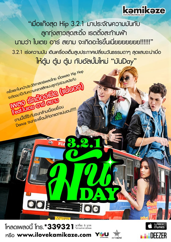 ネコジャンプらを輩出するアイドルレーベルKAMIKAZEのヒップホップユニット3.2.1と、タイ歌謡ルークトゥン界のアイドルであるバイトゥーイ・アールサヤームがコラボレーションした新曲「ラックトーンプート(ネーノーク)[Splash Out] 3.2.1 Kamikaze feat.バイトゥーイ・アールサヤーム」のYouTube再生回数が、2013年5月1日の公開から14日で1000万回を突破しました。