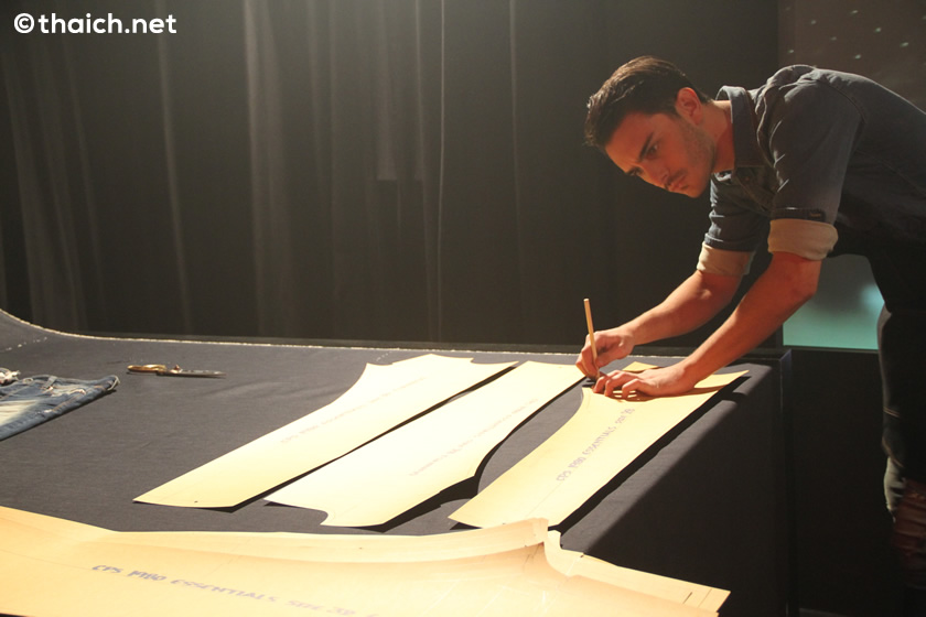 ジーンズ作成の工程を見る、かつてイメージキャラクターを務めたプローイ・チャーマン。