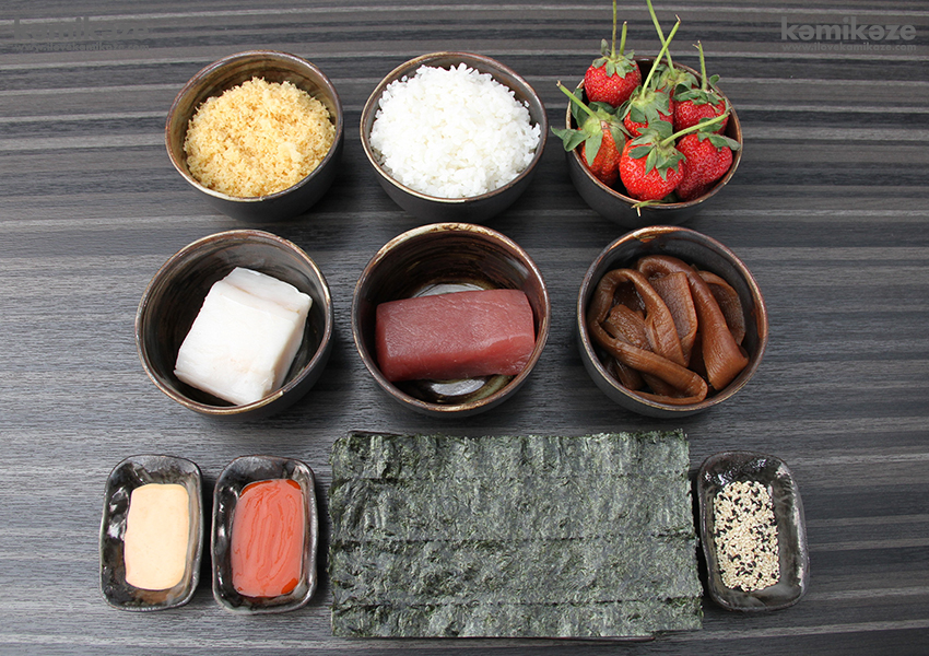 最後にKamikazeレーベルのアイドルグループFFKのファンさんが作る海苔巻き。なんとイチゴ入りですが、結構美味しそうです!