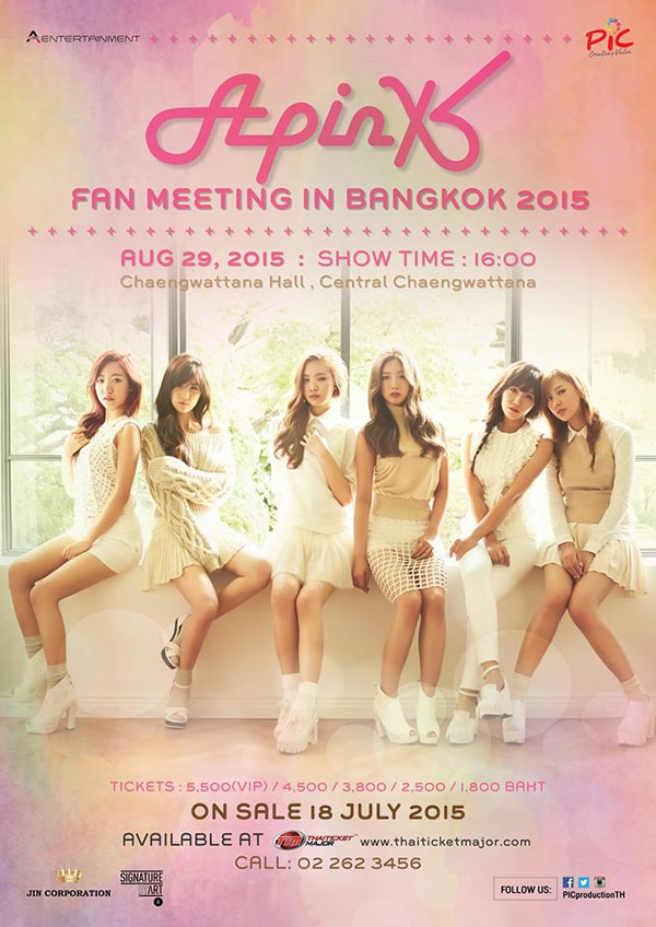韓国のガールズグループ・Apinkのタイ・バンコクでのファンミーティング「Apink Fan Meeting in Bangkok 2015」が、セントラルプラザ・チェーンワッタナー内チェーンワッタナーホールにて、2015年8月29日に開催されます。