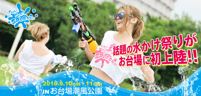 ファンファンスプラッシュ実行委員会は、2016年9月10日(土)11(日)の2日間、タイの水掛け祭り「ソンクラーンフェスティバル」をテーマにした水ぶっかけバトル×音楽フェスを融合させたイベント「Fun!Fun!!Splash!!!(ファンファンスプラッシュ)」を、東京都・お台場潮風公園で開催します。