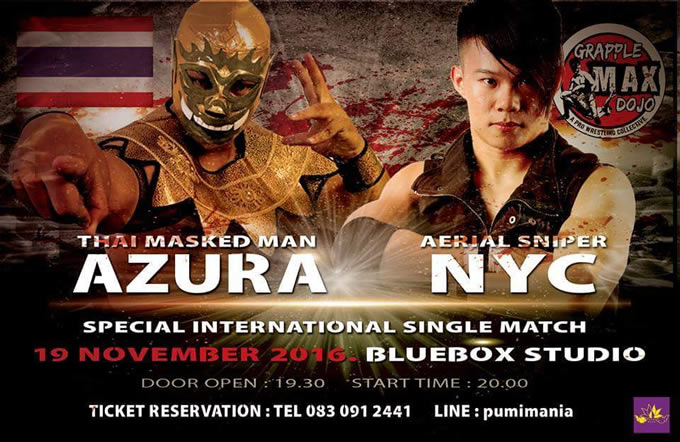 すでに発表されているカードは、みちのくプロレスのタイ人覆面レスラー”AZURA”とタイデビューとなるシンガポール人レスラー”NYC”との対戦。その他のカードは後日発表となります。