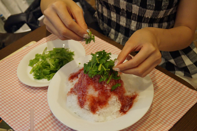 しかし、パクチー大好きパクチストによる試食会を実施したところ、予想していた料理にとどまらず、ドリンクやアヒージョ、さらにはかき氷などのデザートにパクチーをトッピングされる方も出現。