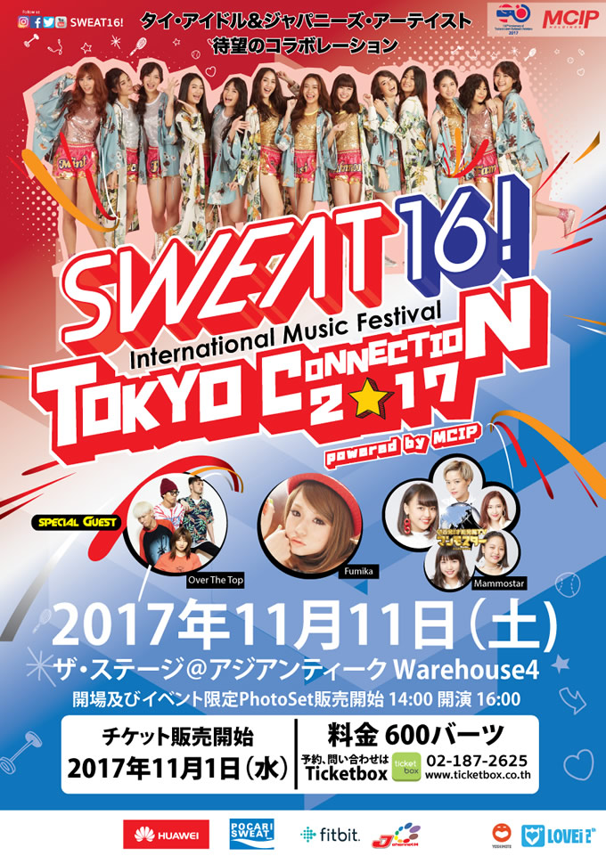 「SWEAT16! Tokyo Connection」には日本からもアーティストが参加。元NMB48の岸野里香がボーカルのロックバンド「Over The Top」、鉄拳(お笑い芸人、イラストレーター)によるパラパラ漫画映像とのコラボレーションが大きな話題となった「fumika」、関西発才能発掘TV番組「マンモスター」からの選抜チームが華を添えます。
