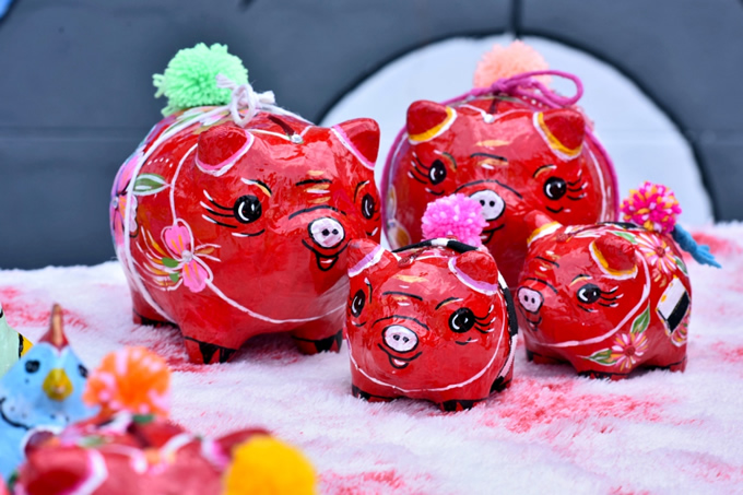 「Paper Mache Pig House」の豚の紙製の貯金箱