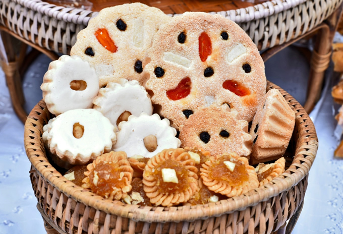 レーズン、や干しプラムをトッピングし、砂糖を振りかけた「カノムファランクディ-ジーン(ขนมฝรั่งกุฎีจีน)」というカップケーキ。