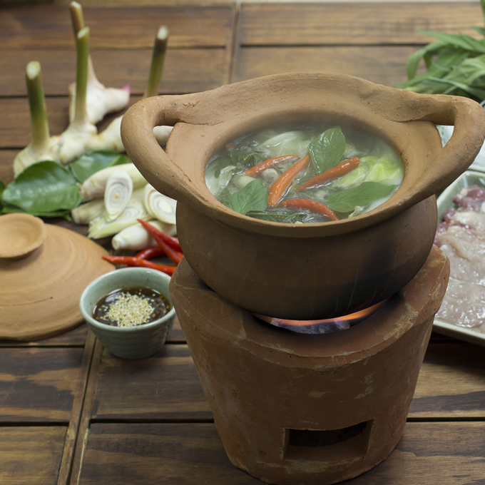 小さな土鍋で具材を煮込み、にんにくと唐辛子のきいたタレをつけて食べるタイの鍋料理“チムチュム”が簡単に作れるキットです。ハーブが香る優しい味わいに、ピリ辛のつけダレがよく合います。