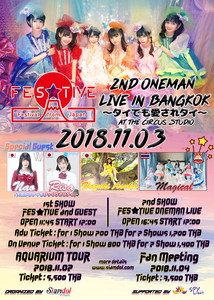 お祭り系アイドルユニット・FES☆TIVEが、タイで前年に続いて二度目となるワンマンライブ『FES☆TIVEタイ2ndワンマンライブ 「~タイでも愛されタイ~」』を開催します。日程は2018年11月3日(土)、会場はバンコク・ラプラオ通りソイ18のThe Circus Studio。主催は日本アイドル情報を発信するSiamdol.