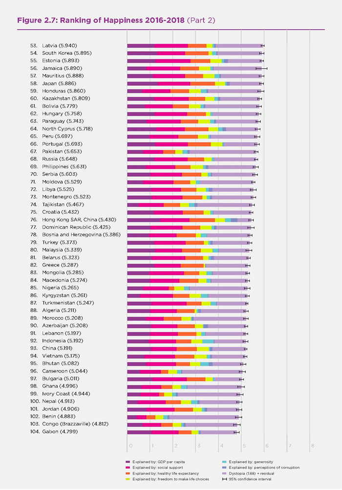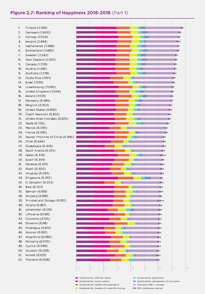はたして、タイの幸福度は何位だったでしょう?個人的にはタイ人の方が、日本人よりも幸福度を感じているのではないかと予想しますが、以下でランキングをご覧ください。