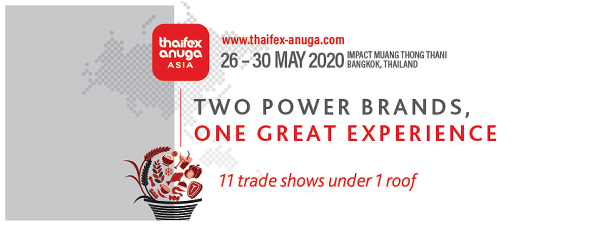 タイの「タイフェックス(THAIFEX-World of Food Asia)」と「アヌーガ(Anuga)」という2つの国際食品展示会が提携して1つになり、「THAIFEX-Anuga ASIA 2020」として、2020年5月26日から30日にバンコクのインパクト・ムアントンタニで開催されます。