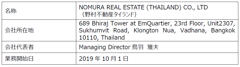野村不動産ホールディングス株式会社は、タイの駐在員事務所を閉鎖し、新たに現地法人“NOMURA REAL ESTATE (THAILAND) CO., LTD”を設立します。