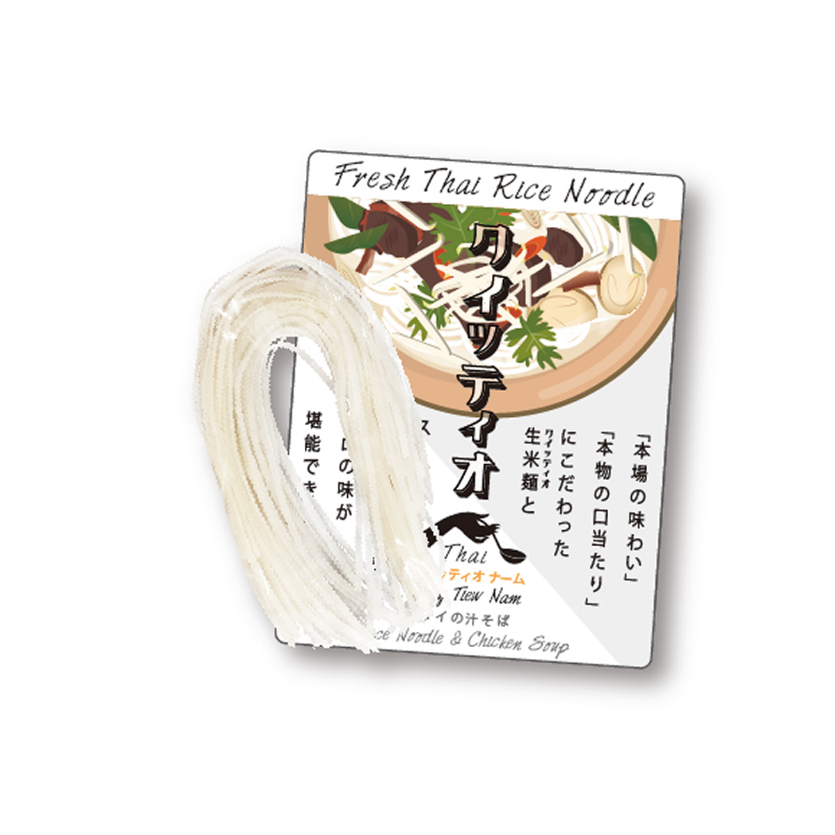 タイでは、料理によって細麺の“センミー”、中太の平麺“センレック”、幅広の平麺“センヤイ”と使い分けていますが、今回は使用用途の広い“センレック”を販売、チキンスープやトムヤムスープに入れたり、炒めて“パッタイ”にしたりするのに最適です。生米麺ならではのもちもちの食感と風味豊かな味わいが特徴で、タイ料理以外でも鍋の〆や和風出汁のスープなど、様々な料理でお召し上がりください。