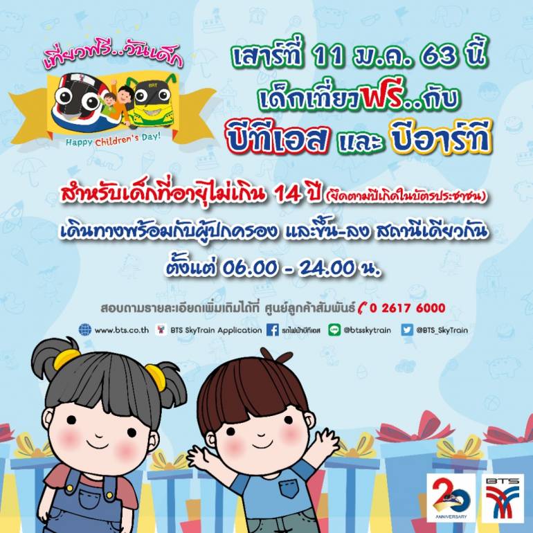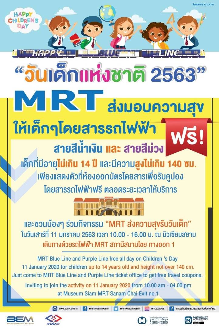 子供たちが気軽に出かけられるようにバンコクを走る各都市鉄道は、「子供の日」の当日に14歳までの子供たちの運賃を無料とするサービスを行います。