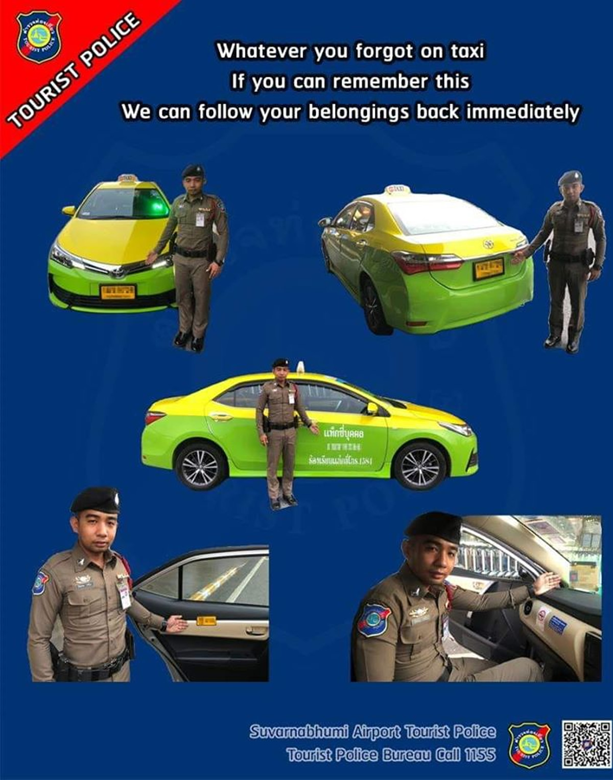 バンコク・スワンナプーム国際空港の観光警察は公式Facebookページで、さまざまな注意事項などを発信中。2020年1月13日の投稿は、万が一乗車したタクシーに忘れ物をしてしまった時のために、予め確認をしておくべきタクシーの3箇所についてです。