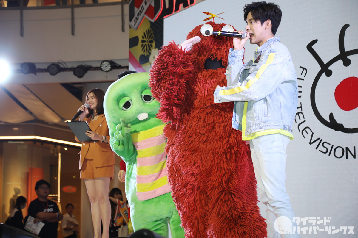 開催初日1月31日の屋内のカルチャーステージ、フジテレビ代表として登場したのはガチャピンとムックでした。