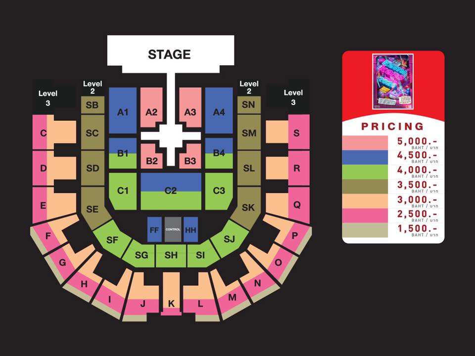 なおチケット価格は5,000 / 4,500 / 4,000 / 3,500 / 3,000 / 1,500バーツ。4月25日よりタイチケットメジャーで発売開始。