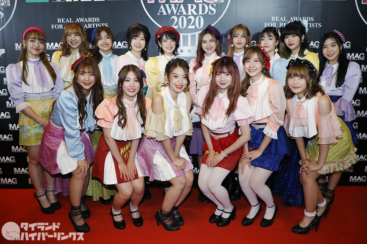 「The Guitar Mag Awards 2020」授賞式を前に、数々のアーティストたちがレッドカーペットに姿を現す中、ひときわ大きな歓声を集めたのがアイドルグループ・BNK48でした。この日のBNK48は、最新シングル「ハイテンション」の選抜メンバー16人での登場です。