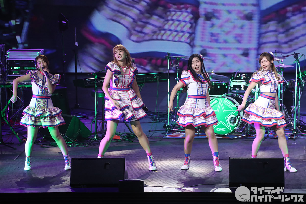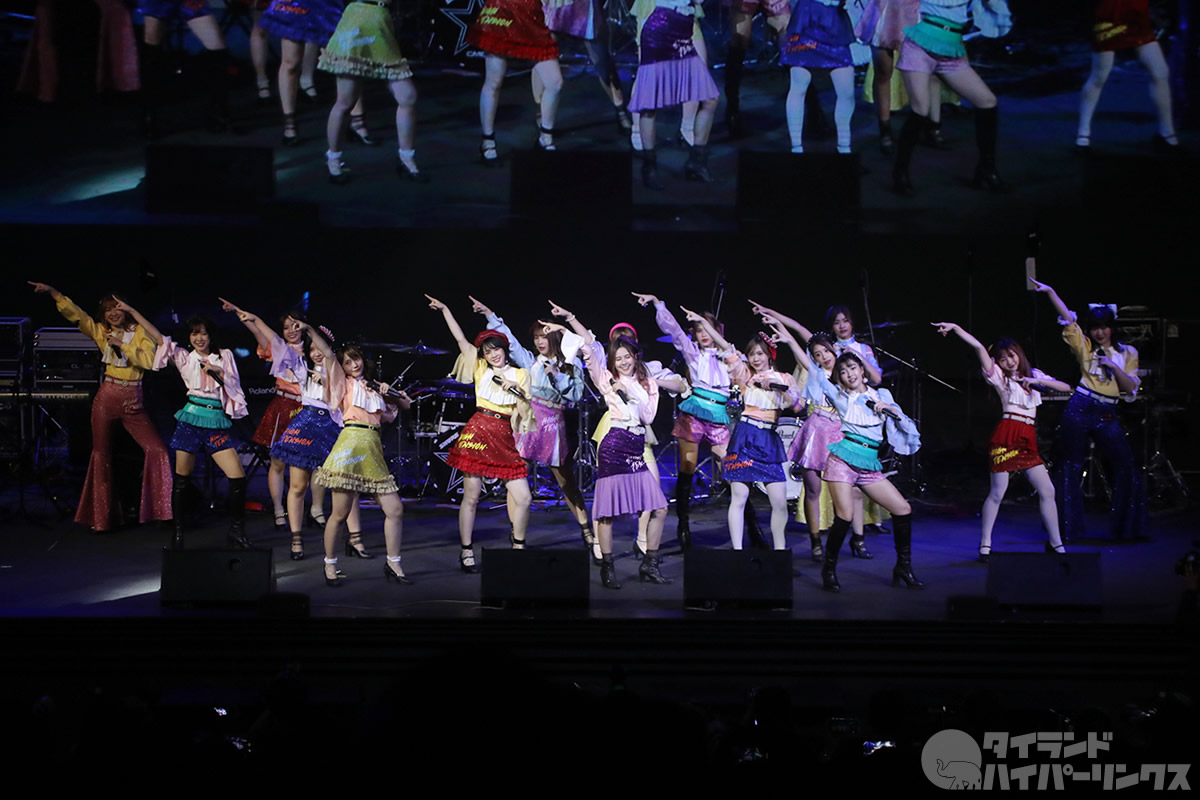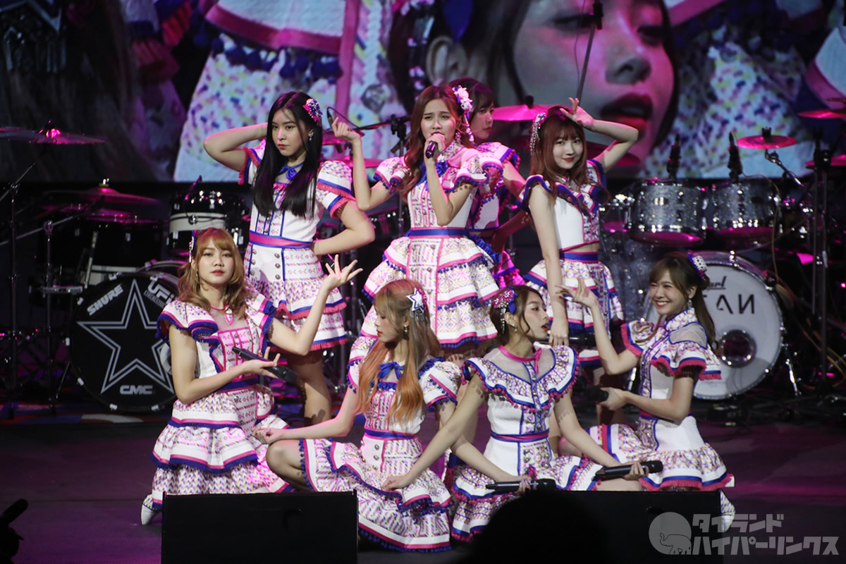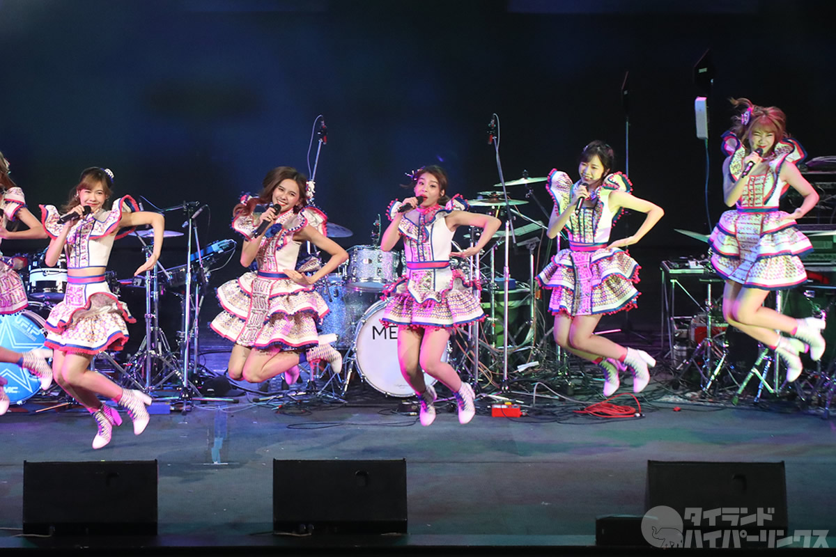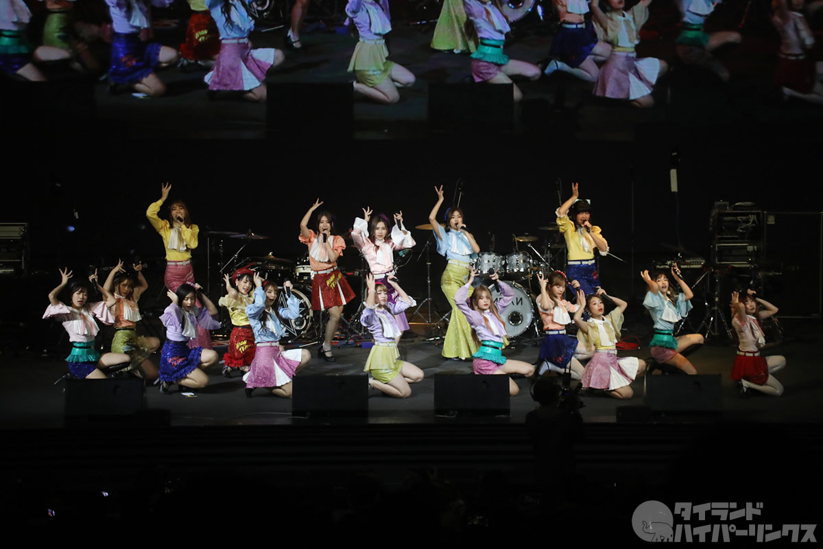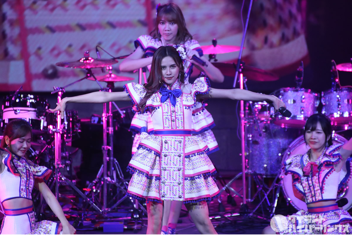 そしてラスト4曲目はナムヌン、ヌーイ、モバイル、ケウ、カイムック、ターワン、プーペ、ナムサイの8人で、「タイバーン x BNK48」の主題歌となった「ドーディドン(โดดดิด่ง)」を披露。「恋するフォーチュンクッキー」に続いてタイ国民の心に届いたのは、老若男女に受け入れられるルークトゥン調を取り入れた、この「ドーディドン」でした。なんと公開から2ヶ月足らずでYouTube再生回数5千万を突破しています。