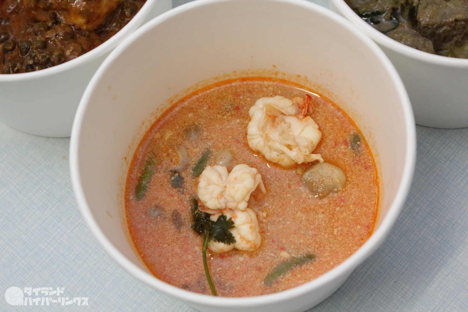 定番のトムヤムクン(「 Traditional Tom Yum Soup with King River Prawns and Fresh Thai Herbs」)かチキンコンソメ(「Betong Chicken Consommé with Turmeric」)、