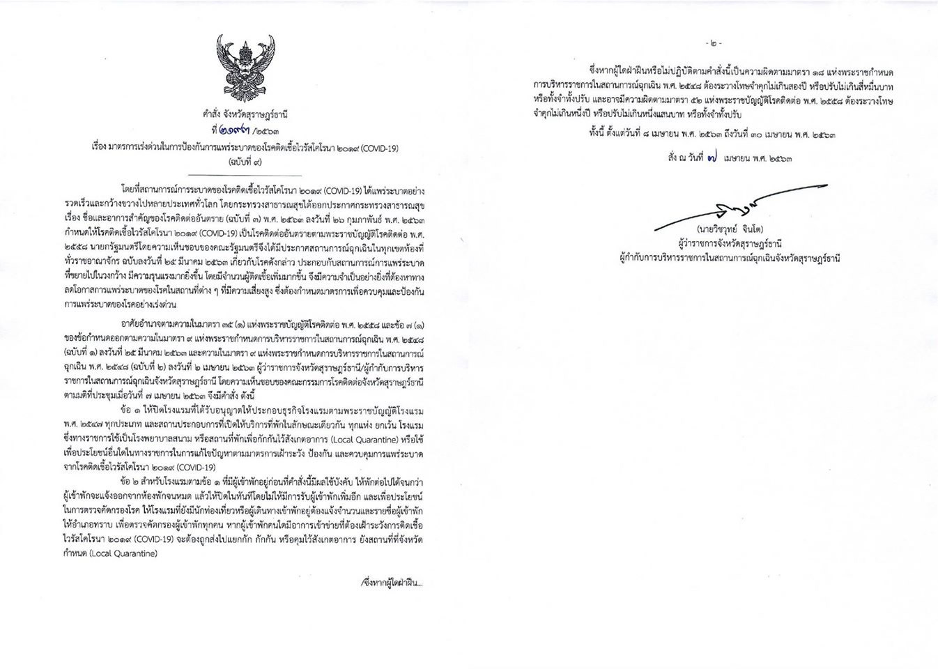 新型コロナウイルス感染拡大を抑制するためにタイ南部スラタニ県は2020年4月7日、県内のホテルなどの直泊地を、4月8日から4月30日まで閉鎖すると発表しました。
