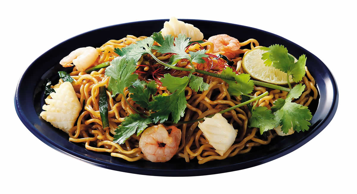 「ホーリーバジル香るガパオライス」は、香りが強く、スパイシーさと清涼感が特徴のホーリーバジルと鶏肉をオイスターソースで炒めたガパオに、目玉焼き、パクチーをトッピングした、本格的なタイ料理です。お米は健康志向の方向けに十二穀米を使用しました。「エスニック香る海鮮焼きそば」は、プリッとした海老といかの食感と、魚醤やオイスターソースの味付けによる海鮮の旨味を活かした焼きそばです。添えられたライムをぎゅっと絞ることでさっぱりとした焼きそばに早変わりします。