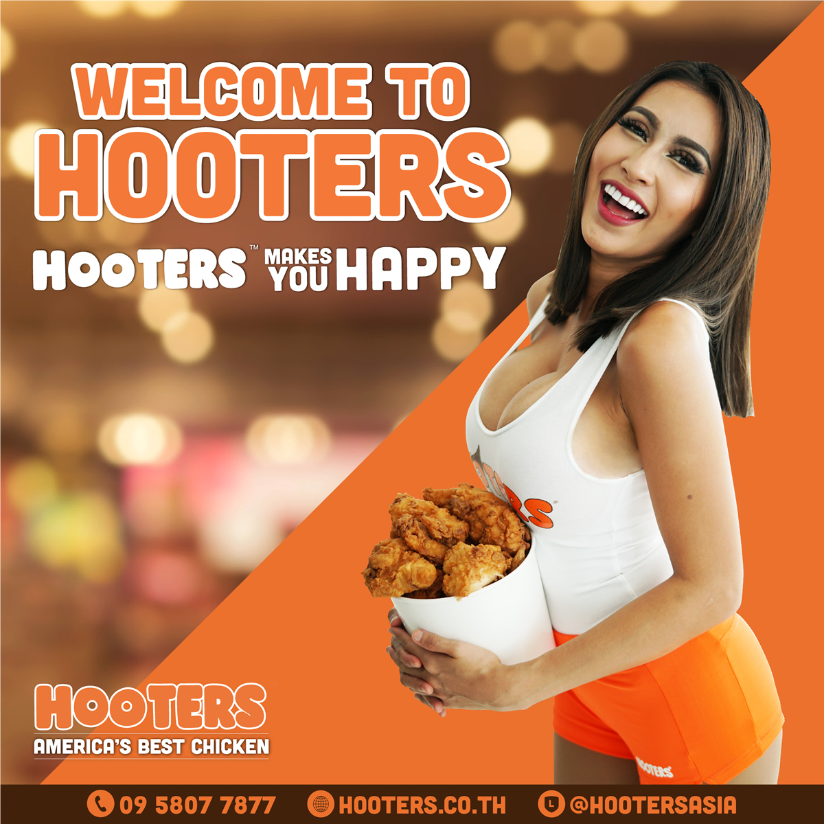 デリバリーの注文は、「HOOTERS」公式サイト https://hooters.co.thか公式Facebook公式ページwww.facebook.com/hootersasiaofficialにアクセスするか、LINE公式アカウント@HootersAsia、または電話095 807 7877から。