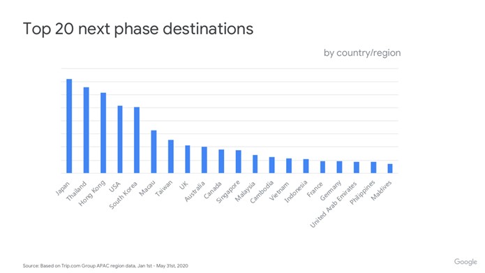 オンライン旅行会社Trip.comグループ(Trip.com Group Limited)はGoogle社と共同で2020年6月22日、「Trip.com GroupとGoogleによる旅行トレンドレポート」を発表しました。新型コロナウイルスの状況が改善するにつれ次期人気旅行先Top20となる都市は、日本、タイ、香港、アメリカ、韓国、マカオ、台湾、イギリス、オーストラリア、カナダ、シンガポール、マレーシア、カンボジア、ベトナム、インドネシア、フランス、ドイツ、UAE、フィリピン、モルディブとなると予測されています。
