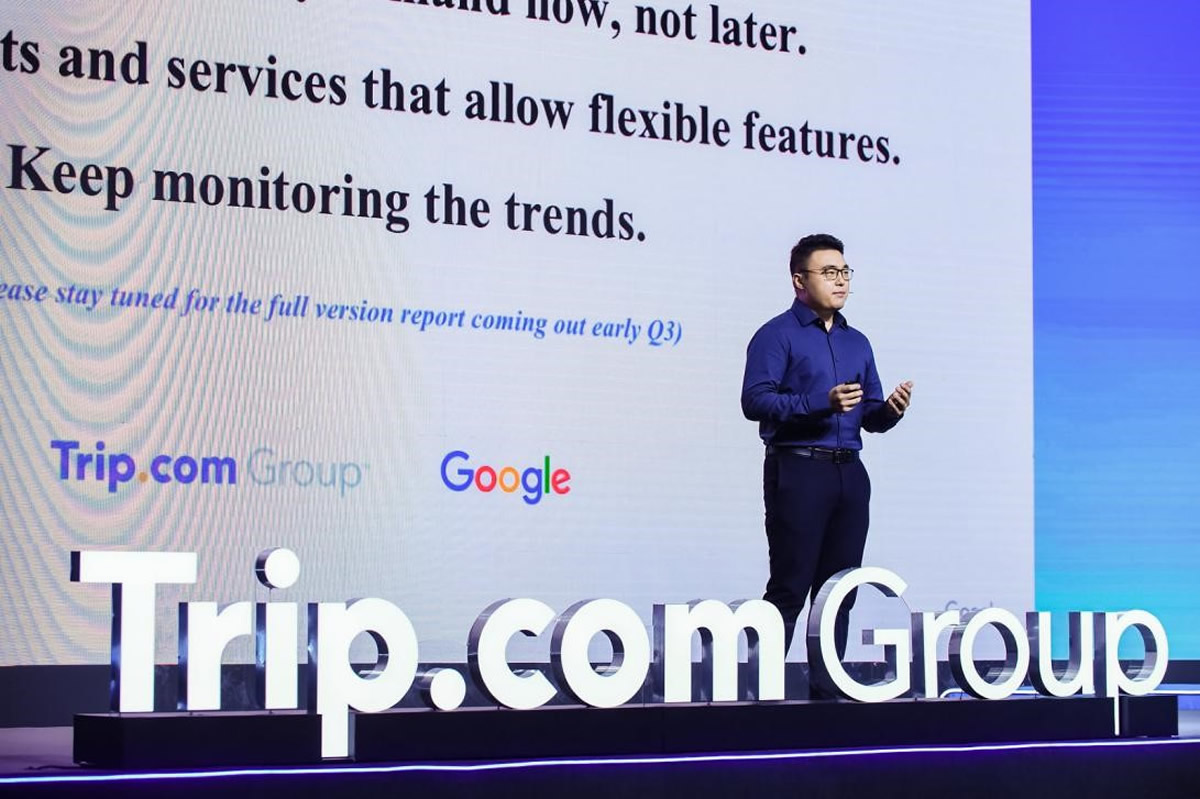 Googleチャイナ オンライン旅行事業責任者のウィルソン・ウー氏が、Trip.comグループの「Travel On」発表イベントで「旅行トレンドレポート」を発表。