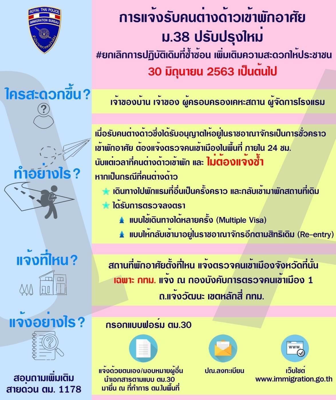 การแจ้งรับคนต่างด้าวเข้าพักอาศัย ม.38 ปรับปรุงใหม่