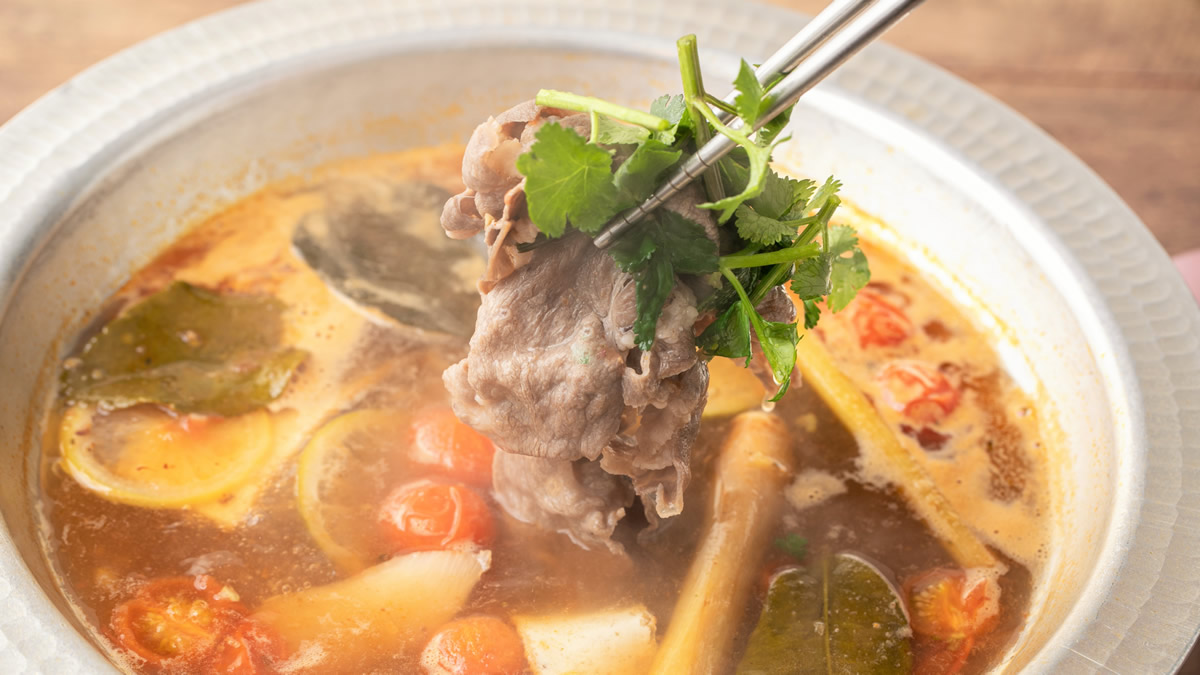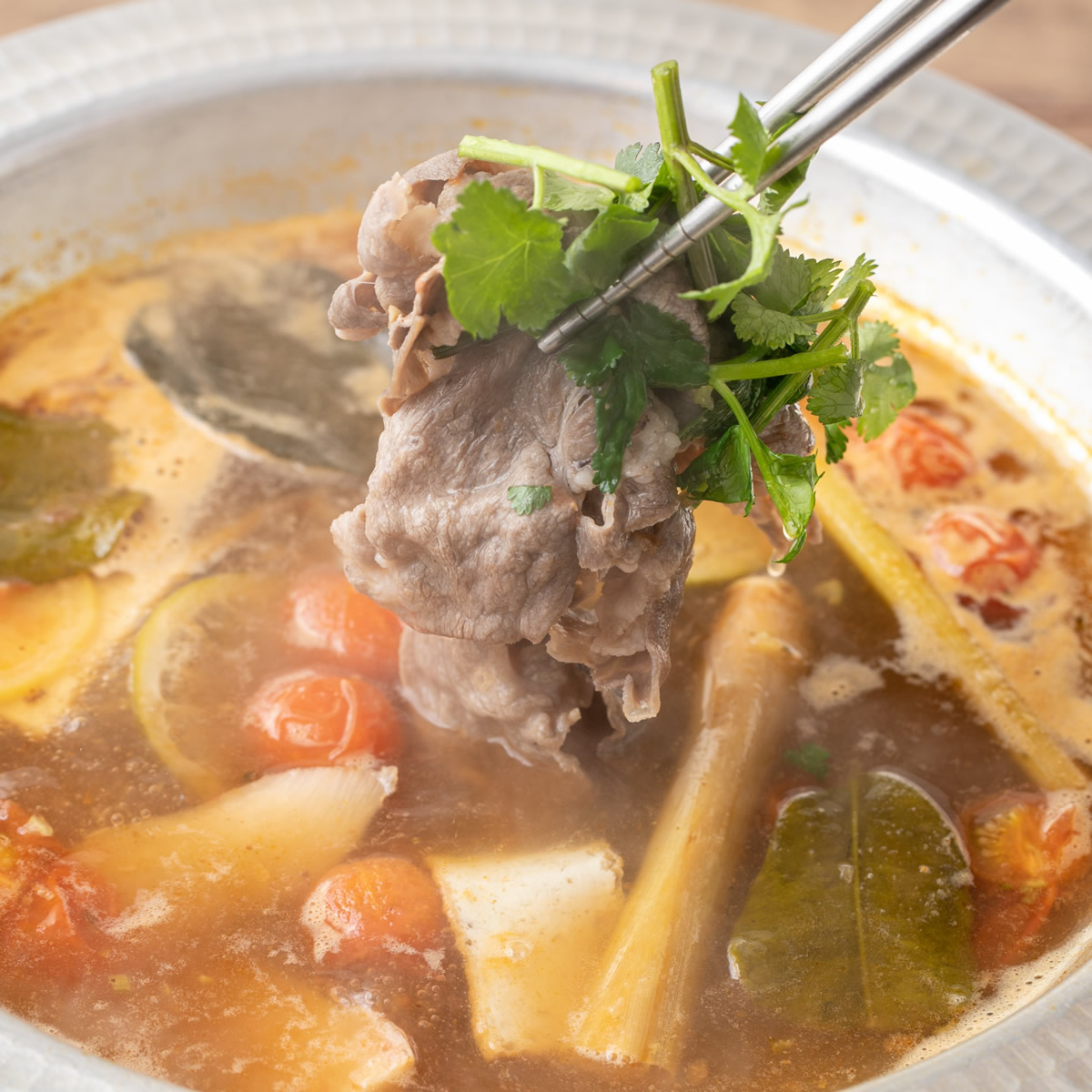 7月13日(月)より、新メニュー『本格トムヤムラムしゃぶ』の提供開始を記念して、【ラムしゃぶ+タンしゃぶ食べ放題+レギュラー飲み放題付コース】以上をご注文で、提供価格より800円OFFとなるキャンペーンを期間限定で実施いたします。※期間終了後は、通常料金にて提供いたします。