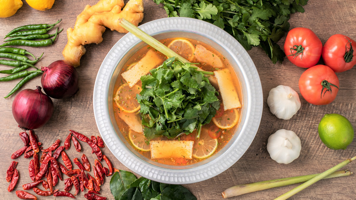 タイ本場の材料を使用し、本格的な辛味と酸味を表現しました。さらに、隠し味に”エビ味噌”を使用することによって、コクと深みをプラスした旨味たっぷりスープに仕上げました。