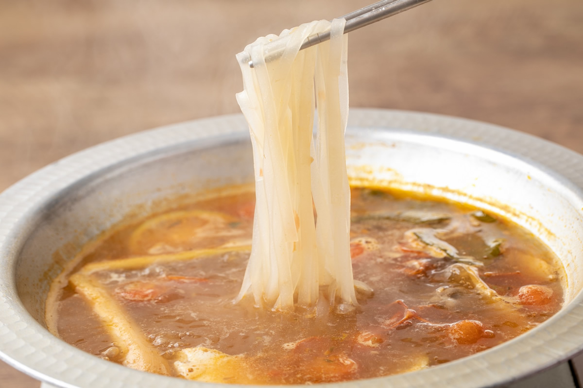 ■〆は本格フォー!ラム肉の旨味がたっぷり入った濃厚トムヤムスープとフォーは至極のおいしさ!■