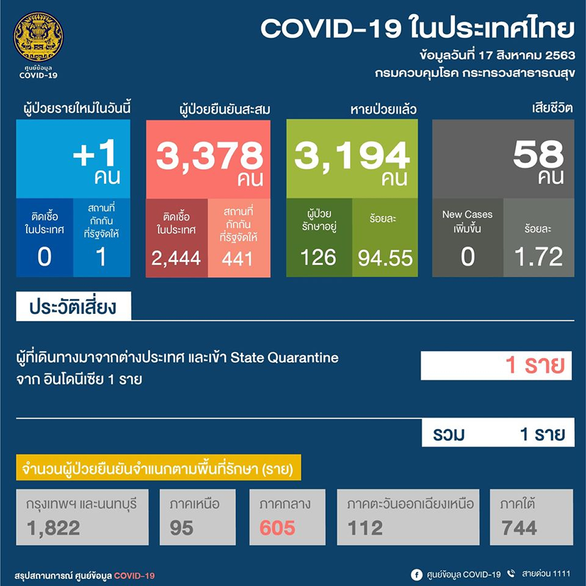 タイCOVID-19状況管理センター<the Centre for Covid-19 Situation Administration (CCSA)>は2020年8月17日午前、毎日恒例になっている新型コロナウイルス感染者に関する最新状況の発表を行いました。