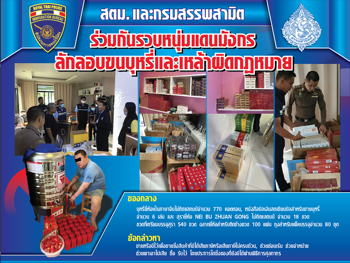 タイ入国管理局(タイ警察)と物品税局は共同で2020年8月21日、酒と煙草の関税を支払わなかったなどの容疑で、サムットプラカーン県の民家に住む中国人の男を逮捕したと発表しました。