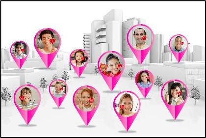 家族や仲間同士で参加することのできる「Smile Relay」では、「Smile Pin」が仲間同士で特定の色に揃ったり、笑顔写真に共通のマークが表示されます。