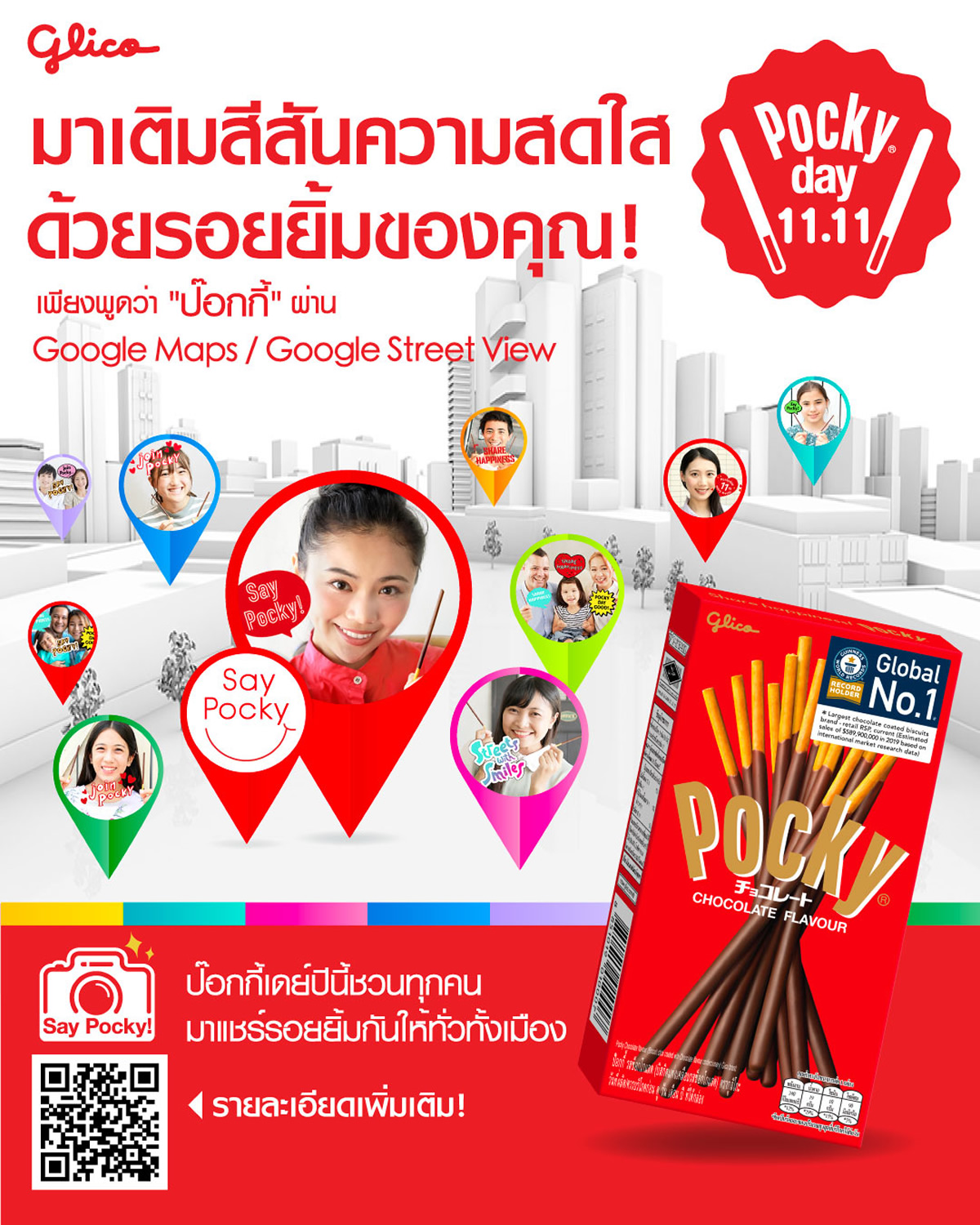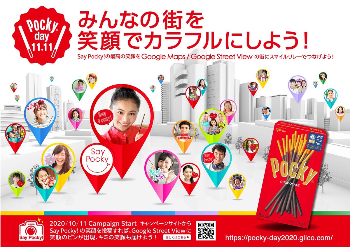今年で5年目を迎えるPocky dayのグローバル統一キャンペーンは、新型コロナウイルスの影響で活気が減った街中に笑顔を取り戻す「Say Pocky! Cheer Street View」として、10月11日より、日本、中国、香港、台湾、シンガポール、タイ、インドネシア、マレーシア、フィリピン、アメリカ、カナダの11のロケーションで同時開催しています。