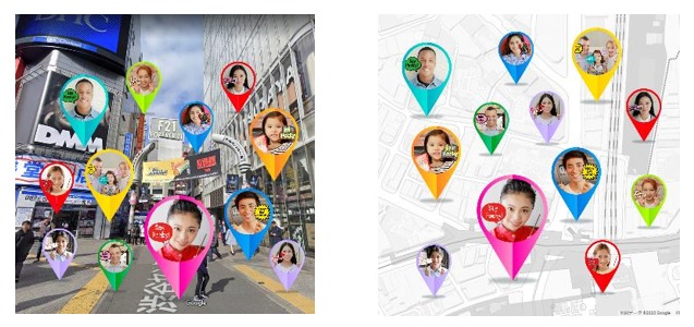 ② 作製された「Smile Pin」を、59のスポットから好きな場所を選択して、Map上(Google Street View、Google Maps)にドロップ。