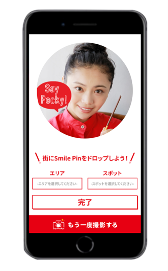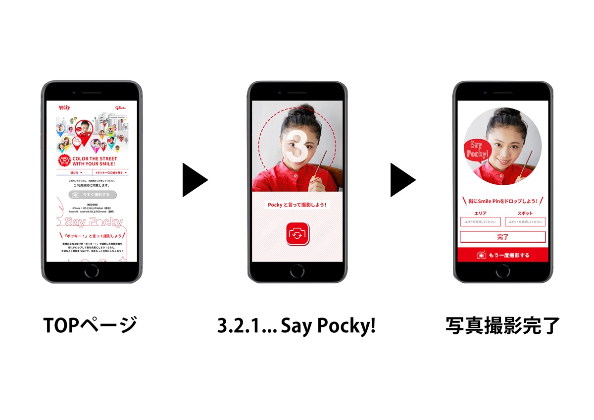 ① キャンペーンサイトで「Say Pocky!」という掛け声と共に笑顔を撮影。