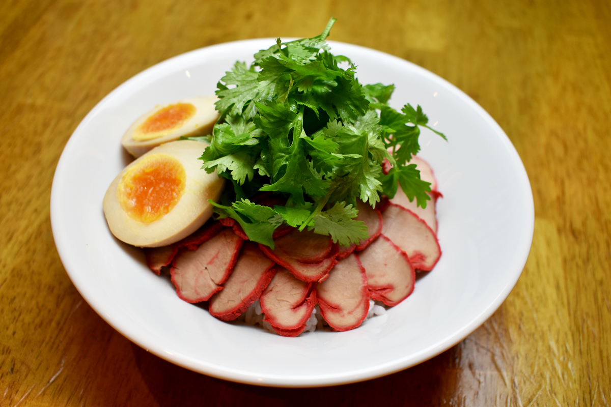 低温調理でしっとりと仕上げた鶏チャーシューを添えました。パクチーとの相性は最高の一杯です。