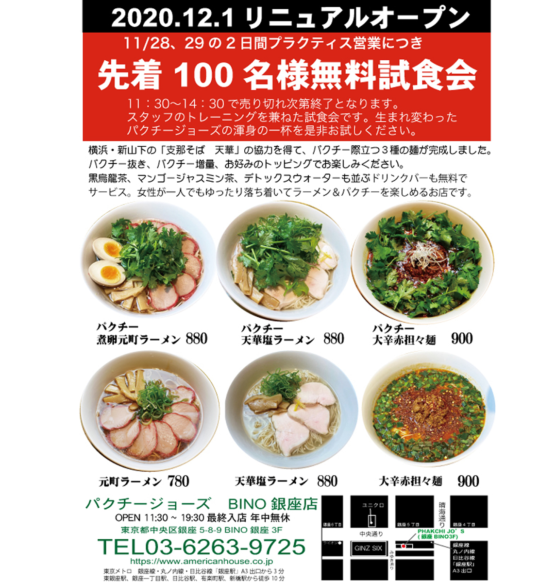 コロナウィルス感染拡大の影響で世界的に不安定な時代ですが、パクチージョーズは「食べることで、体の中から健康で美しく!」という女性の持つ願いを叶えられる夢のラーメン専門店を目指しています。