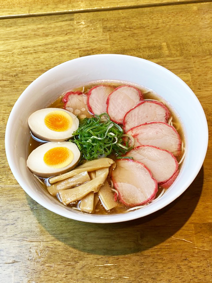 私たちのホームタウン・横浜はラーメン発祥の地の一つと言われております。「横浜のラーメン」と言えば今や「家系」と誰もが頭に浮かびますが、実は明治・大正・昭和と横浜で長く愛されてきたのは、中華の麺料理の流れを汲むすっきりとした味わいの醤油ラーメンでした。このラーメンは紛れもなく横浜の伝統的なラーメンです。国産丸鶏と豚ガラ、昆布の旨みを加えたまろやかな旨みの透き通ったスープに低加水のストレート麺を合わせました。絹のように柔らかい豚ヒレ肉の赤いチャーシューと京都産九条ネギを乗せた懐かしい醤油ラーメンです。パクチーを載せることで違った味わいも楽しめます。