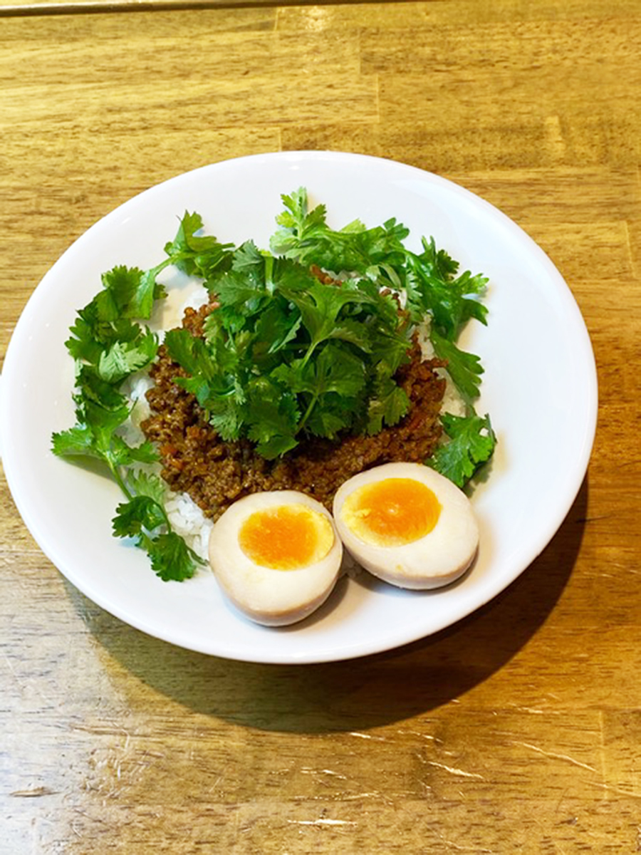 スパイス香るドライカレー、チャーシュー丼、肉味噌ご飯の3種の丼メニューも用意しました。またハーフ