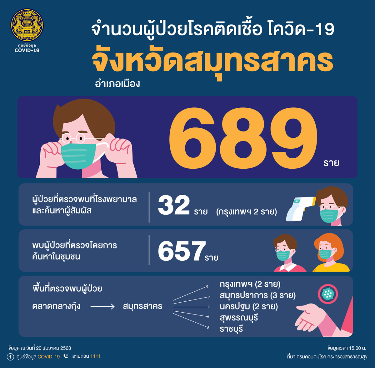 サムットサコン県のマハーチャイ市場を中心に発生した500人以上のクラスター(感染者集団)。2020年12月20日午後7時(タイ時間)最新の情報では、マハーチャイ市場に関連してバンコクの2人を含む689人の陽性が確認されています。