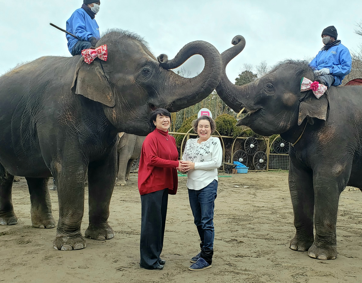 (写真左):株式会社ドムドムフードサービス 代表取締役 藤﨑忍氏 (写真右):市原ぞうの国園長 坂本小百合氏