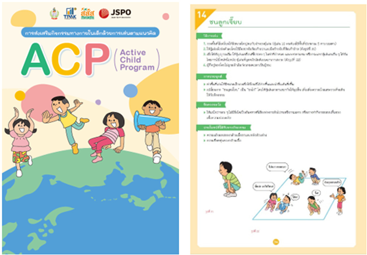タイ国内の教員やスポーツ指導者をはじめとする、多くの方々にJSPO-ACPを紹介・普及させるため、この度、両国共同で作成に取り組んでいたタイ版ACPテキストが完成しました。本テキストは、身体活動の重要性や子どもたちへの指導法・指導技術を紹介する他、両国で馴染みのある運動遊びを数多く紹介しています。