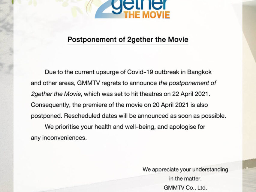 「2gether THE MOVIE」タイでの公開延期、新型コロナ拡大で