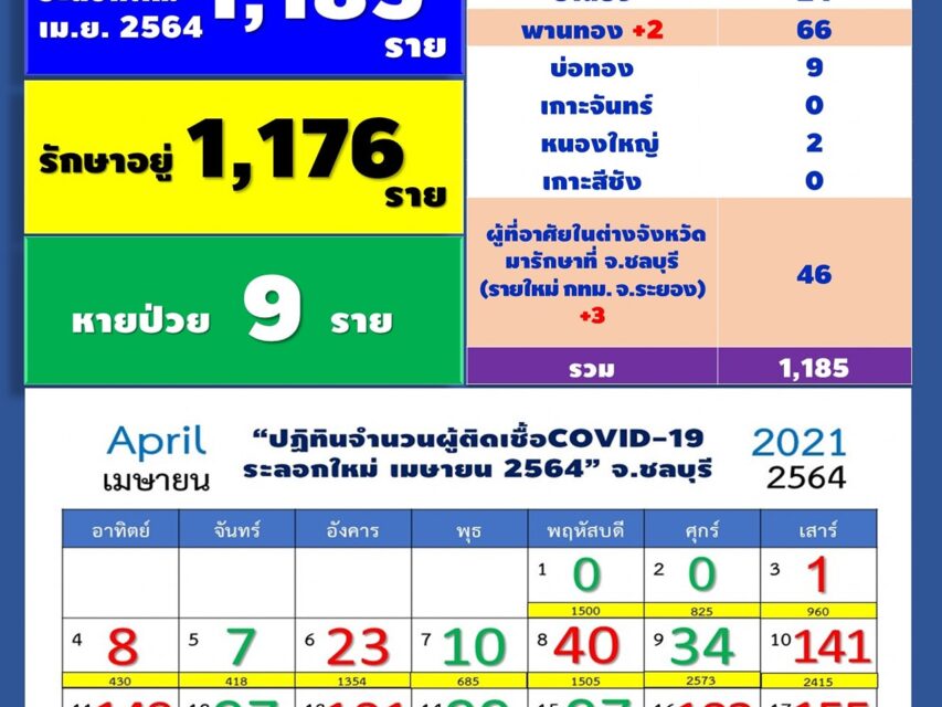 シラチャやパタヤがあり日本人にも馴染み深いタイ東部のチョンブリ県は2021年4月18日(日)朝6時半、新型コロナウイルスの感染状況についての発表を行いました。新規に陽性が確認されたのは120人。4月に入って1,185人の... Continue reading