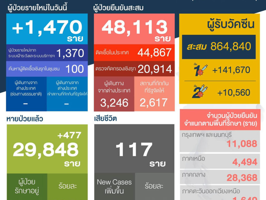 タイCOVID-19状況管理センター<the Centre for Covid-19 Situation Administration:CCSA>は2021年4月22日午前、新規に1,470人の新型コロナウイルス陽性者を... Continue reading