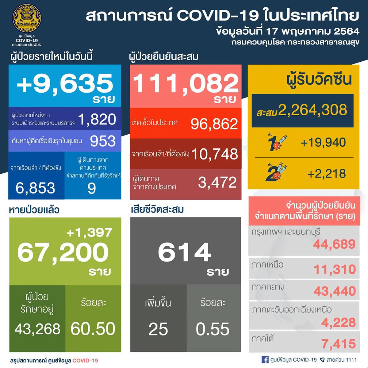 タイ国内2,086人が新たに陽性 /バンコク980人/ノンタブリ221人/死亡17人[2021年5月9日発表]