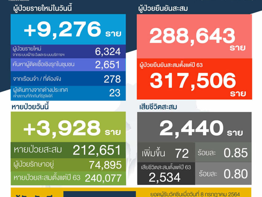 タイCOVID-19状況管理センター<the Centre for Covid-19 Situation Administration:CCSA>は2021年7月9日(金)、1日で新たに9,276人の新型コロナウイルス陽... Continue reading
